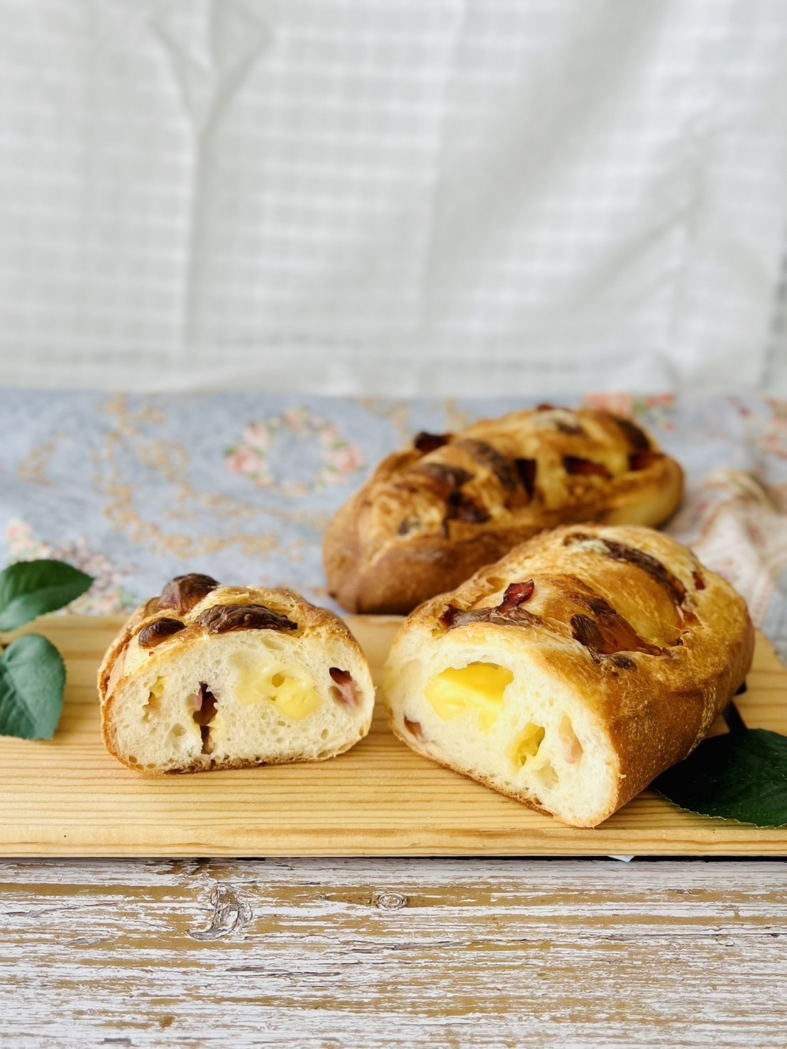 フランス生地にベーコンとチーズを入れて焼き上げました。