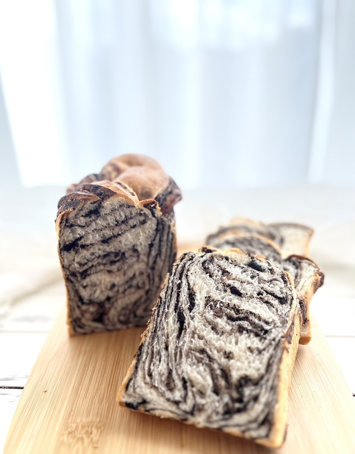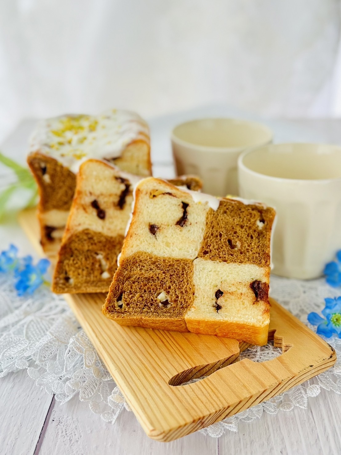 コーヒー生地とミルク生地をチェック模様に組み立てました。