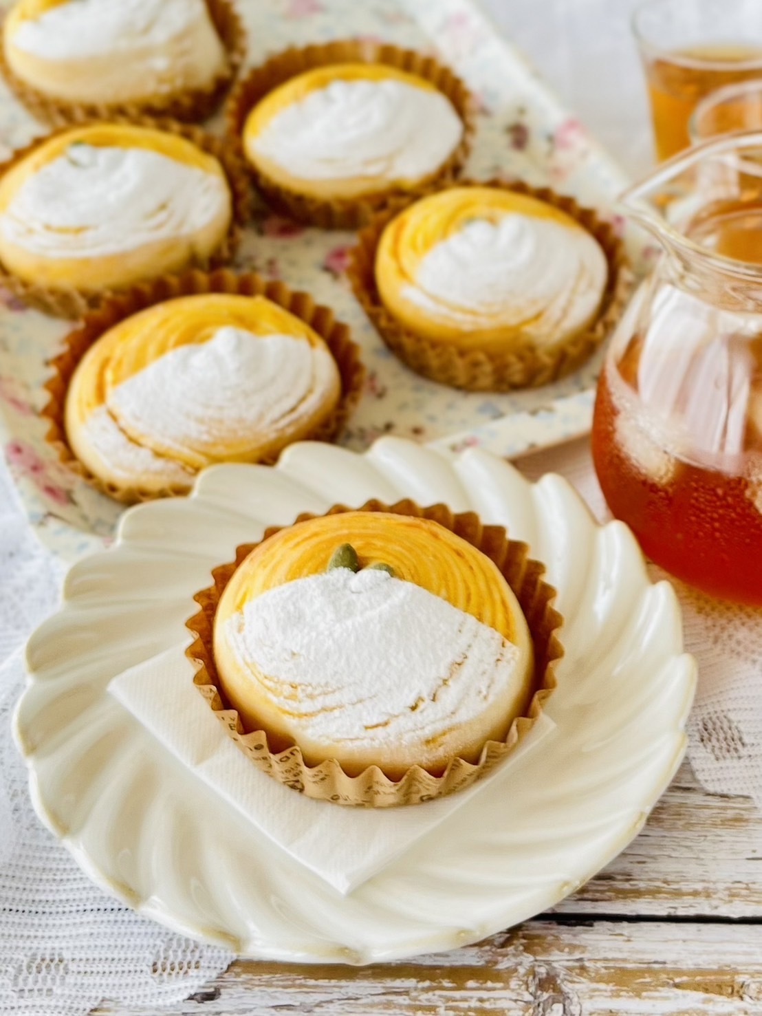 焼き上がりには練乳アイシングとピスタチオダイスをデコレーション。
