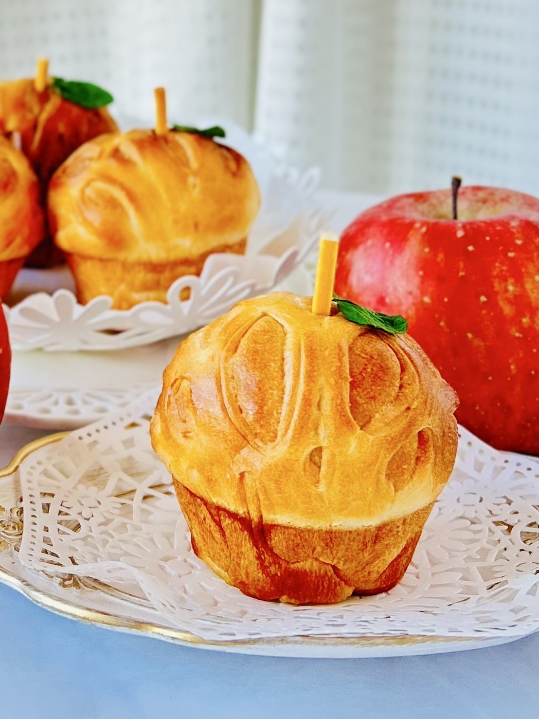 アップルパイの様な模様をつけて、リンゴの形におめかしした可愛いパンです。